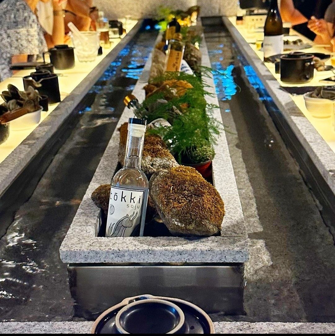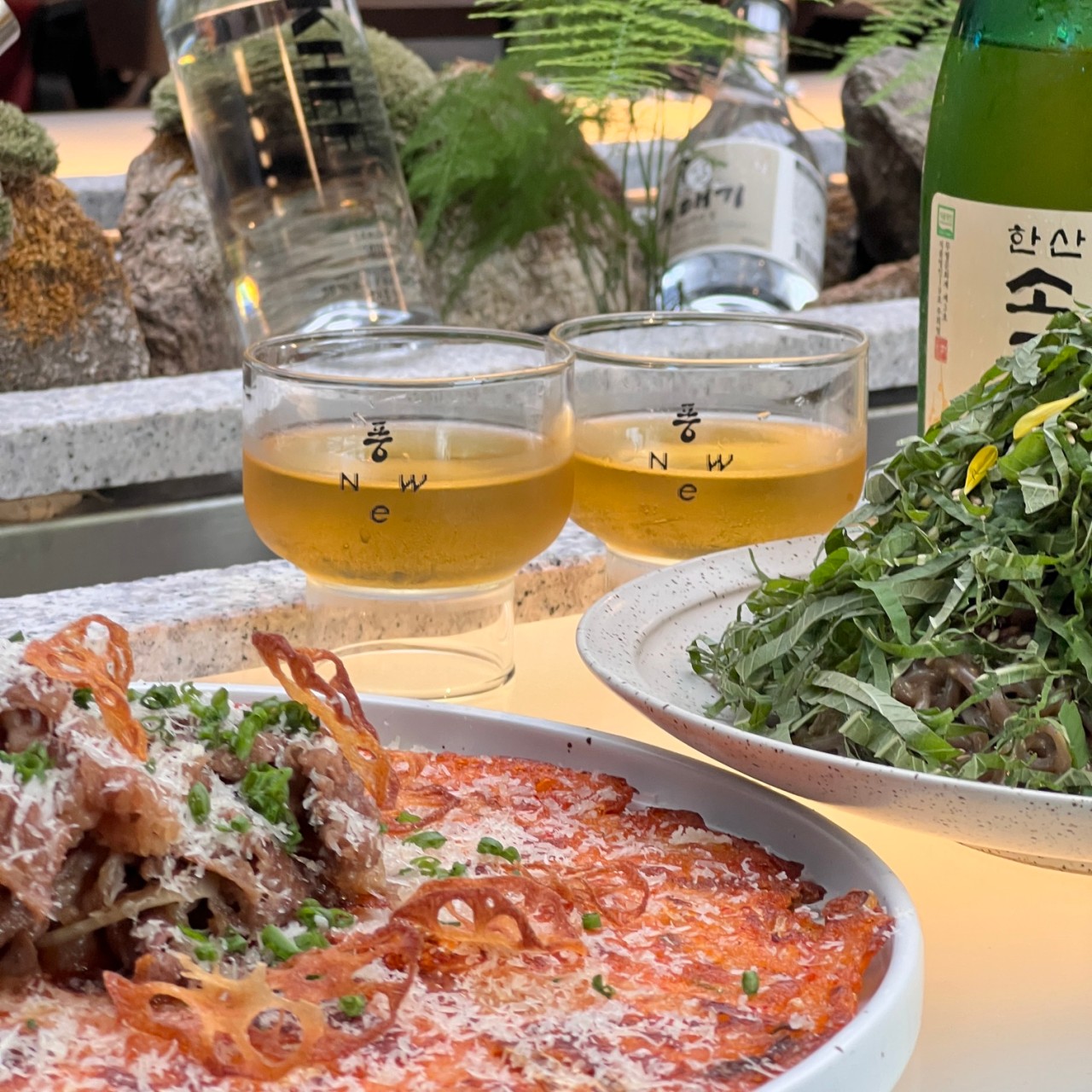 실내에 흐르는 폭포 소리가 공간의 분위기를 완성하는 한식 다이닝 바다. 바지락술찜, 해물찜 등 한국적인 안주가 중심이며, 조용히 술 한 잔 기울이기 좋다.
