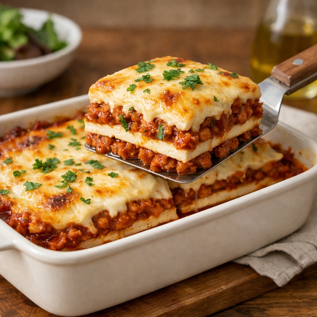 • 한 문장 핵심: 파스타 면 대신 두부를 사용해 새해에 잘 맞는 담백한 고단백 라자냐 완성