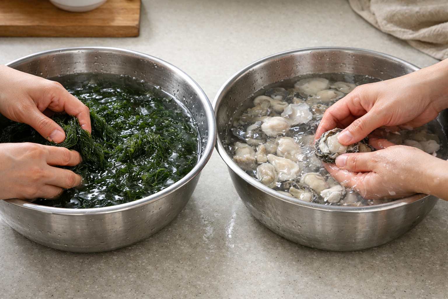 핵심 답변 매생이굴국의 핵심은 '세척'과 '타이밍'이다. 매생이는 이물질이 많으므로 소금물에 흔들어 씻어야 하며, 굴은 무즙이나 옅은 소금물로 세척해 비린내를 잡아야 한다. 또한, 매생이는 오래 끓이면 녹아버리므로, 육수가 끓어오른 뒤 마지막 2~3분에 넣어 살짝만 익혀야 특유의 실크 같은 식감을 살릴 수 있다.