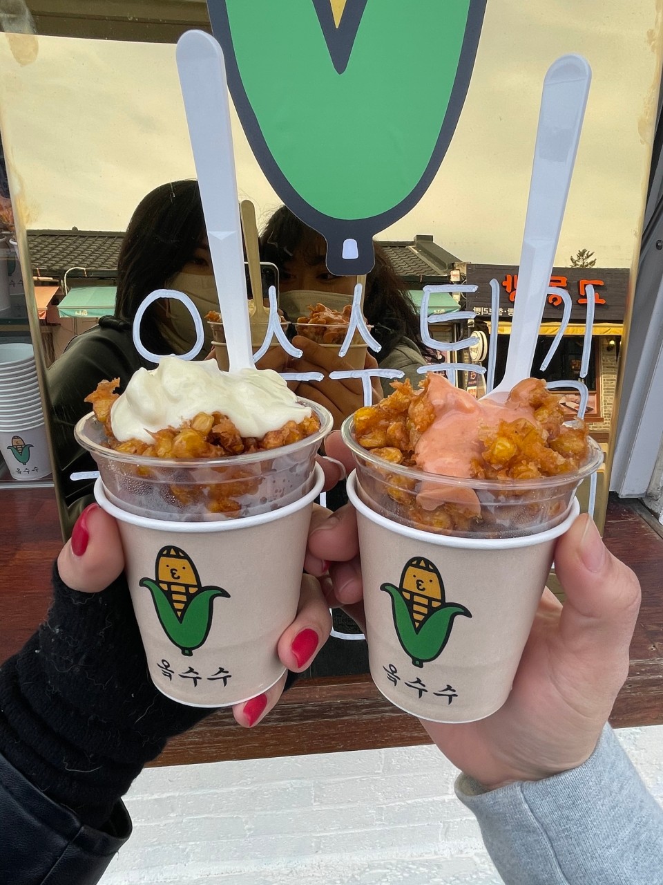 황남옥수수는 옥수수튀김과 아이스크림을 결합한 간식이다. 특제 소스를 더해 단순한 튀김에서 한 단계 확장된 구성을 만든다. 달콤함과 고소함이 동시에 들어온다.