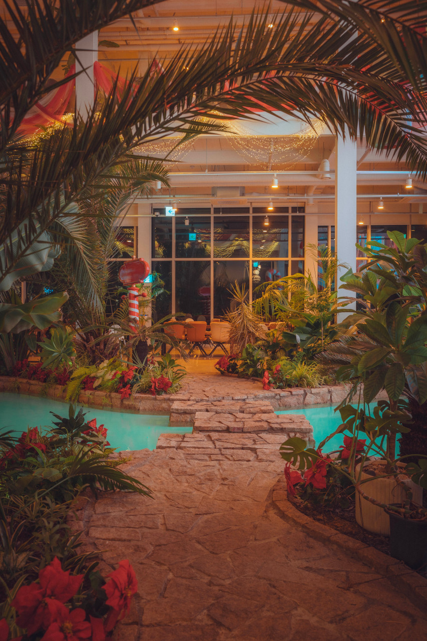 카페 외부에는 약 2,000평대의 넓은 정원이 있으며 피크닉존, 캠핑존, 야외 테이블존 등이 무료로 개방돼 있어 날씨 좋은 날 산책이나 사진 촬영을 즐기기에 좋다. 애견 동반 가능 공간도 운영해 반려견과 외출하기에도 무리가 없다.