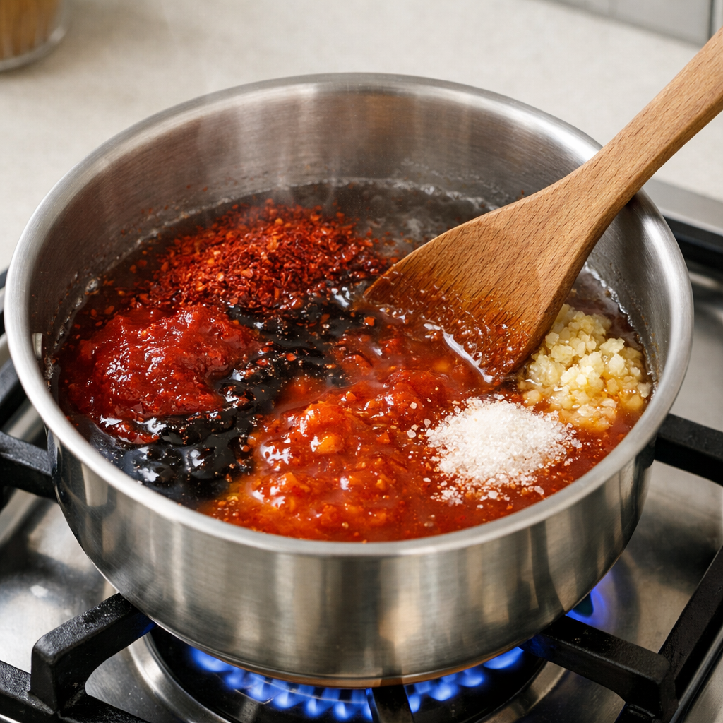 3. 불을 중불로 켜고 주걱으로 바닥을 긁어가며 양념을 충분히 풀어준다.