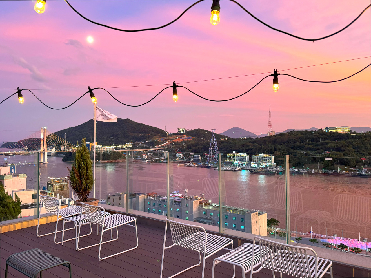 창가 쪽에 앉으면 돌산대교와 케이블카가 함께 보이고, 날이 맑은 날에는 물결 위로 햇빛이 반사되는 장면도 잘 보인다. 루프탑은 바람이 바로 닿는 구조라서 해 질 무렵이나 해가 완전히 내려간 뒤에 분위기가 달라진다. 사진을 찍기보다는 바다를 천천히 보는 쪽에 가까운 공간이다.
