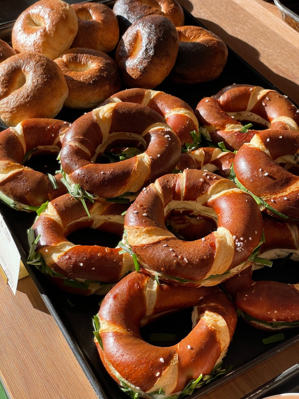 이곳의 가장 큰 특징은 종류다. 30종이 넘는 베이글과 다양한 크림치즈를 함께 고를 수 있다. 기본 플레인 베이글부터 명란, 감자, 잠봉처럼 식사 대용으로 충분한 메뉴까지 준비되어 있다.