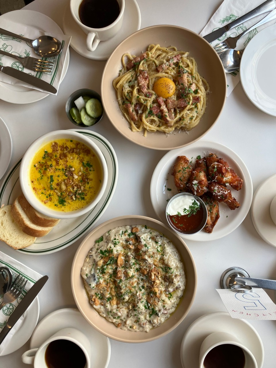 미국 가정식 스타일 메뉴가 중심이며, 집처럼 편하게 식사할 수 있는 분위기를 지향한다. 우드 가구와 따뜻한 조명이 어우러져 편안한 느낌을 준다. 브런치 시간대에는 자연광이 잘 들어오고, 저녁에는 조도가 낮아 분위기가 차분해진다. 소개팅 자리에서 과하게 화려하지 않으면서도 단정한 인상을 주는 공간이다.