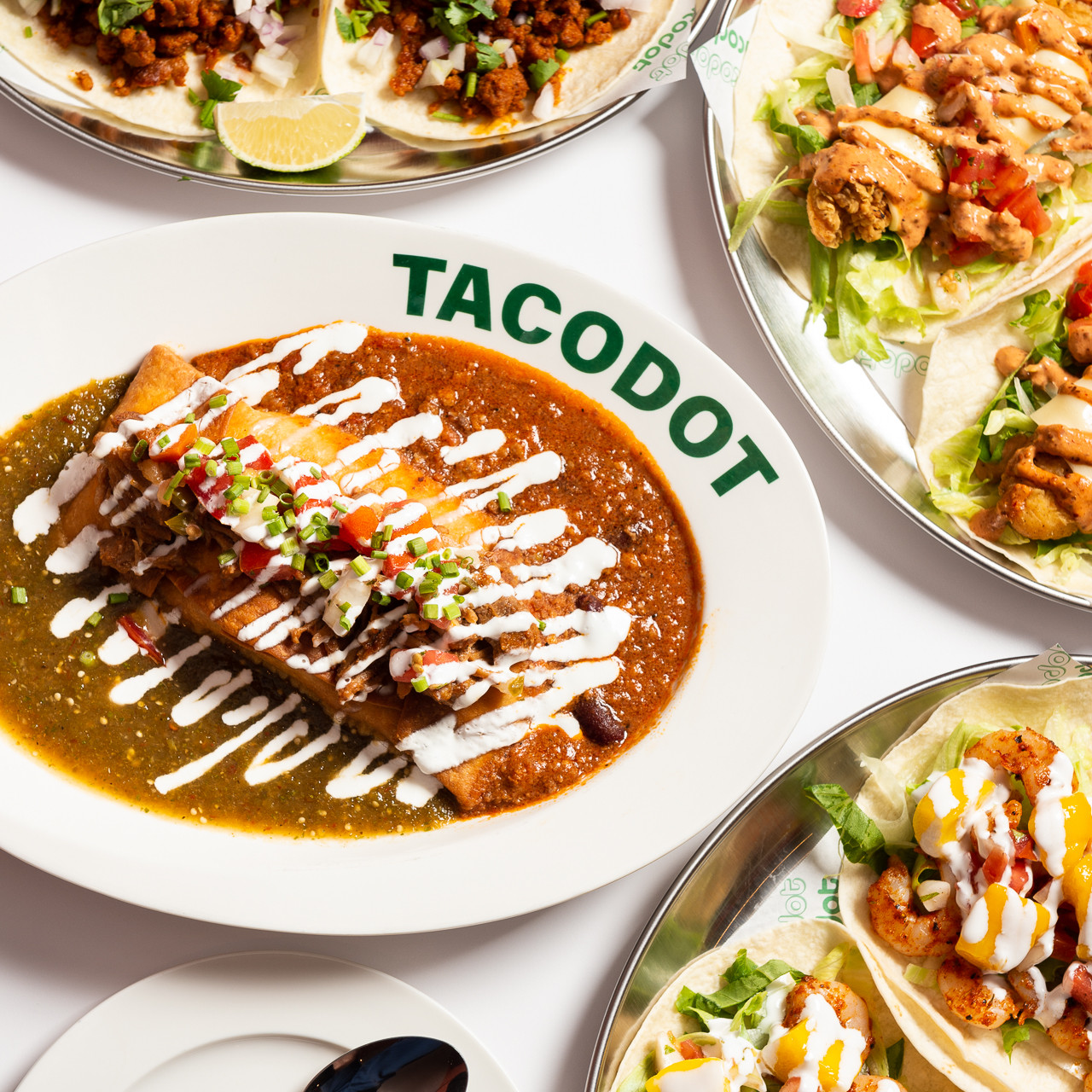 풀드포크는 묵직한 풍미를 강조한 메뉴로 소개되고 있고, 쉬림프 타코는 새우와 망고, 사워크림 조합이 특징이다. 타코 외에도 엔칠라다, 오키나와 타코라이스 등 선택지가 있다.