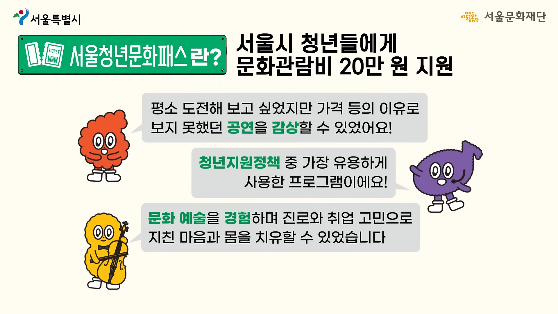 이런 현실을 반영해 서울시가 운영하는 제도가 바로 ‘서울청년문화패스’다. 2026년에도 계속되는 이 사업은 청년들이 문화 경험을 통해 일상의 균형을 찾고, 보다 폭넓은 문화적 선택지를 누릴 수 있도록 돕는 데 초점을 맞추고 있다.