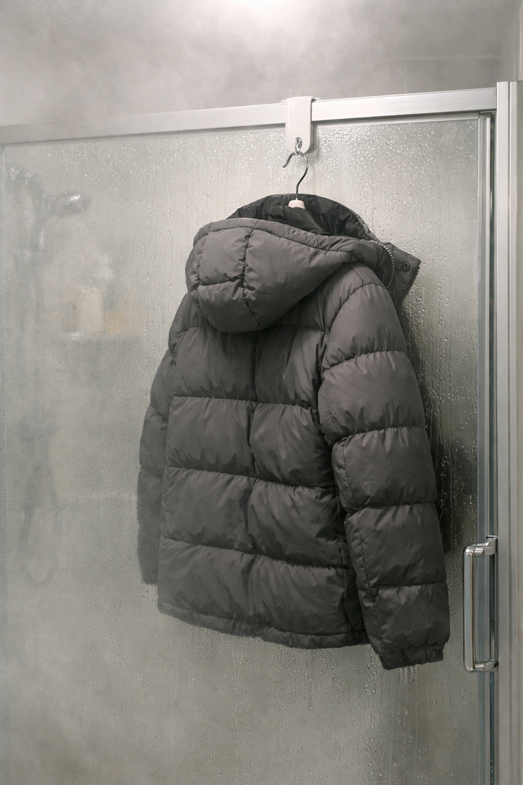 샤워를 마치고 욕실에 김이 가득할 때를 이용한다. 컵에 물과 식초를 똑같은 양으로 섞어 욕실 한쪽 구석에 둔다. 패딩을 욕실에 걸어두고 문을 꼭 닫는다. 30분에서 40분 뒤 꺼낸다. 바람 통하는 곳에 걸어두면 식초 냄새는 사라지고 땀 냄새만 줄어든다.