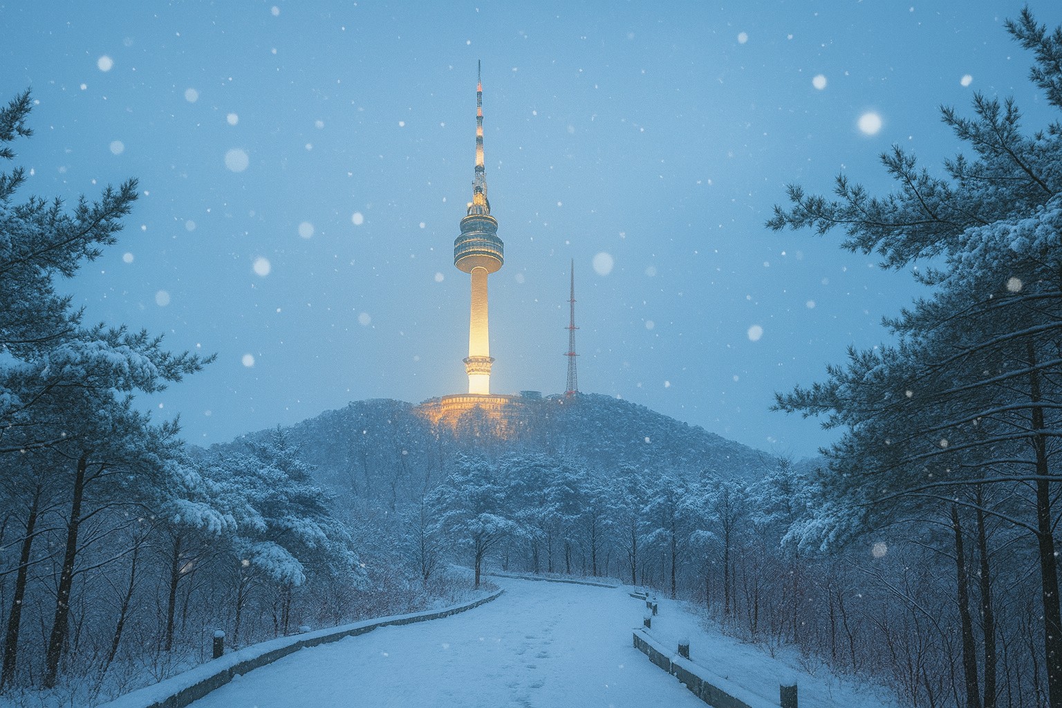 도심에서 가장 ‘만만하게 올라갈 수 있는 설경 명소’. 남산은 눈이 내리는 순간, 조명과 중첩되며 서울 겨울의 정석 같은 장면을 만든다. 케이블카나 순환버스를 이용하면 거의 ‘산책 수준’으로 접근할 수 있는 것도 큰 장점.