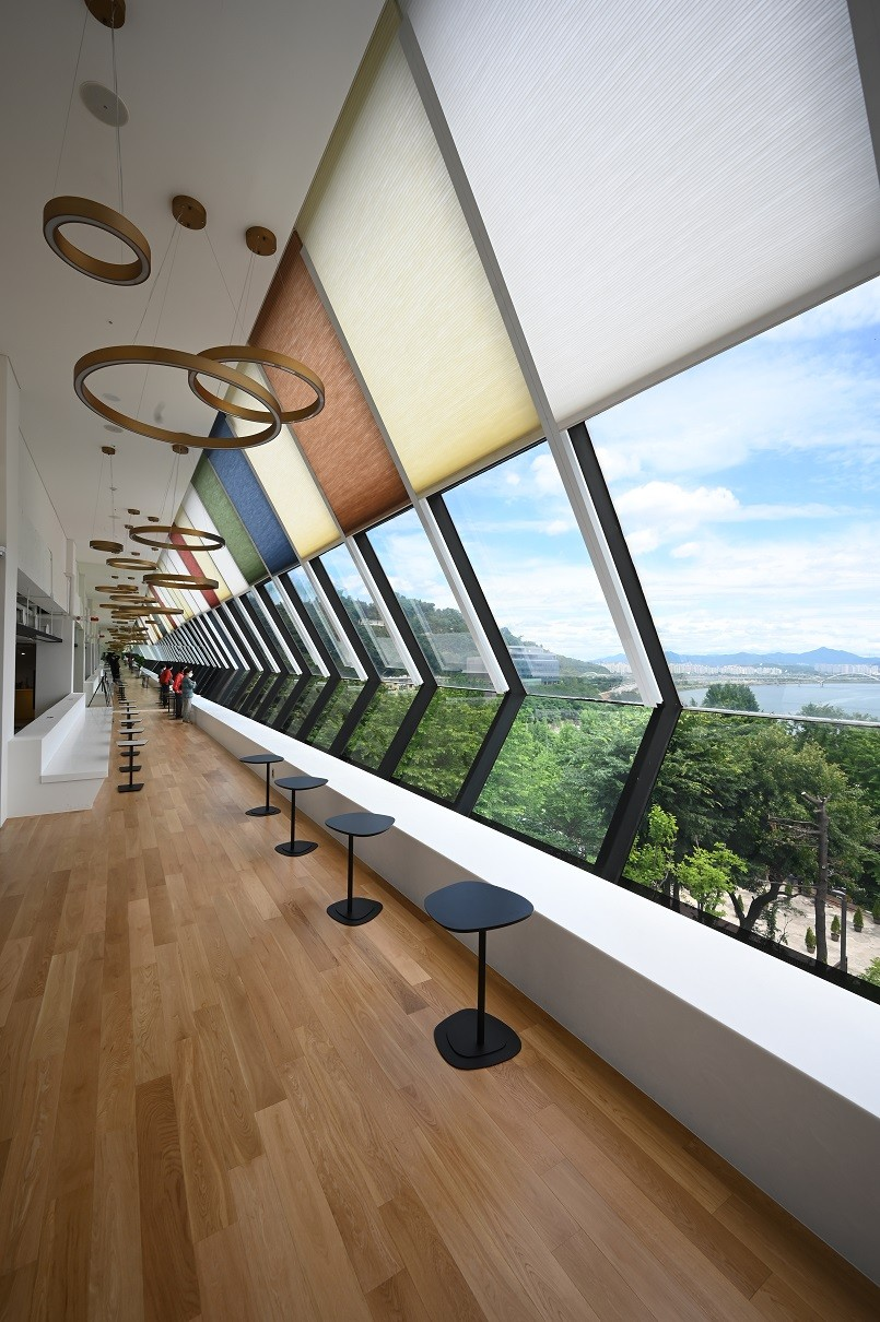 천장이 높고 조명이 은은한 내부는 겨울철에도 차분하고 따뜻한 인상을 준다. 낮에는 자연광이 공간을 채우고, 밤이 되면 한강 위로 내려앉은 야경과 조명이 어우러지며 연말 특유의 고급스러운 분위기를 만든다.