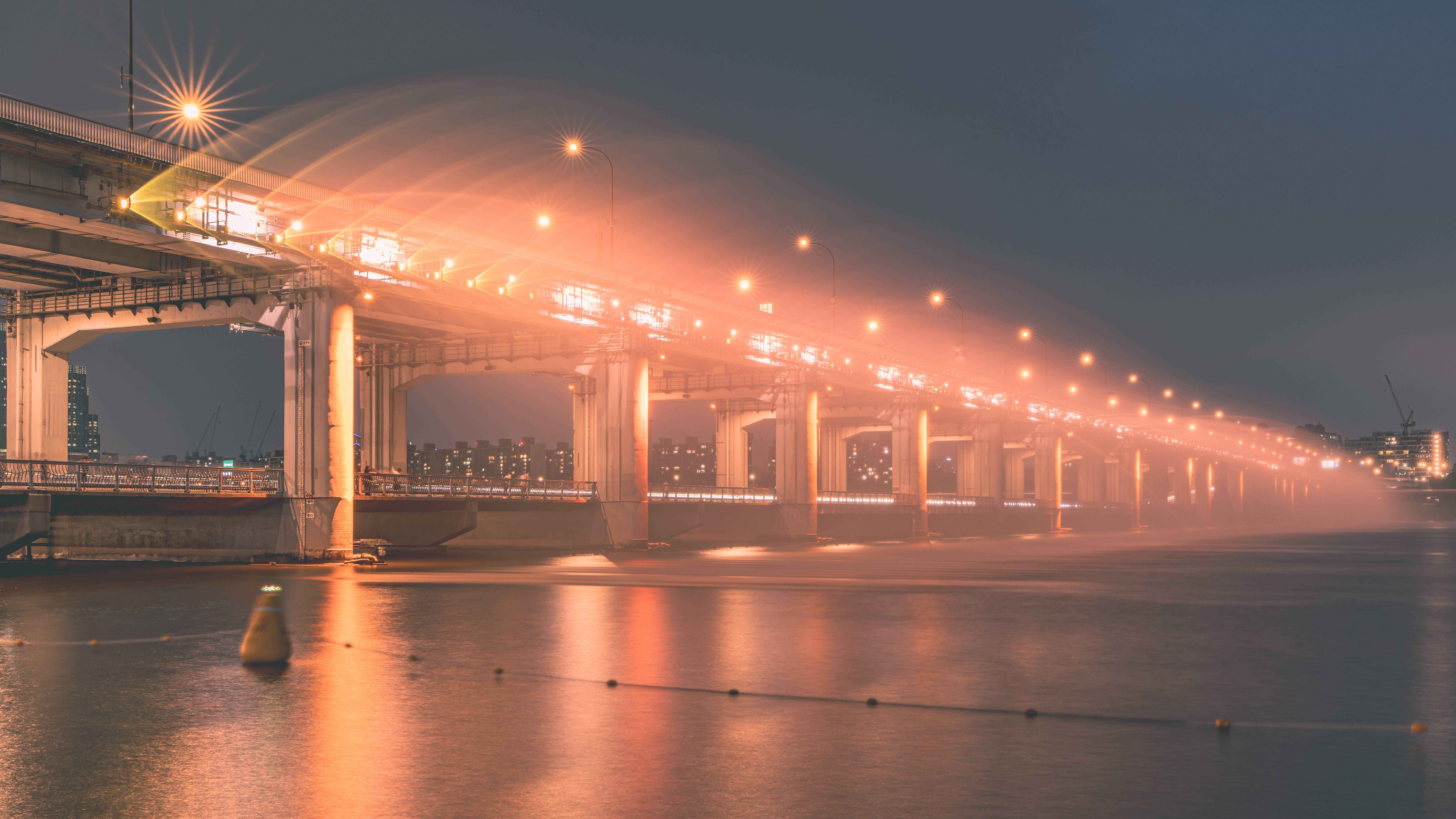 • 잠수교 인근: 잔잔한 수면과 낮은 조도의 도시 불빛 조화