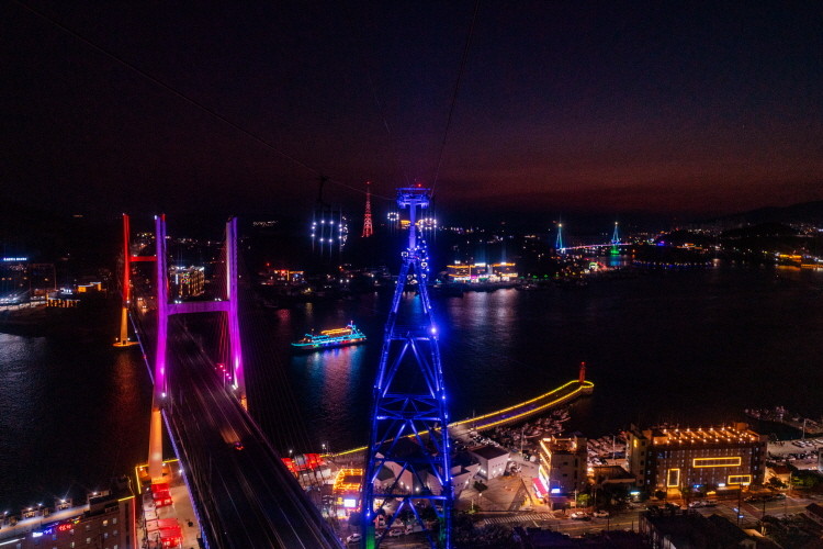 케이블카는 돌산과 자산을 잇는 노선으로 운행되며, 탑승하는 순간부터 시야 아래로 펼쳐지는 바다와 항구, 다리 풍경이 자연스럽게 이어진다. 야간에는 조명이 더해져 데이트 코스로도 인기가 높다.