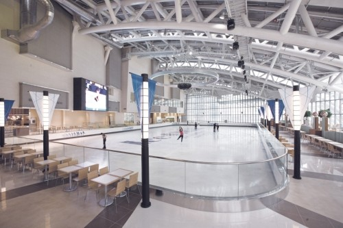 개방감과 채광 천장이 거대한 유리 돔으로 되어 있어 자연광이 그대로 쏟아진다. 낮 시간대 방문하면 실내임에도 야외 스케이트장에 있는 듯한 개방감을 느낄 수 있다. 다만 백화점 조명과 햇빛이 섞여 바닥 얼음의 굴곡이 눈에 잘 안 보일 때가 있으니 주의해야 한다.
