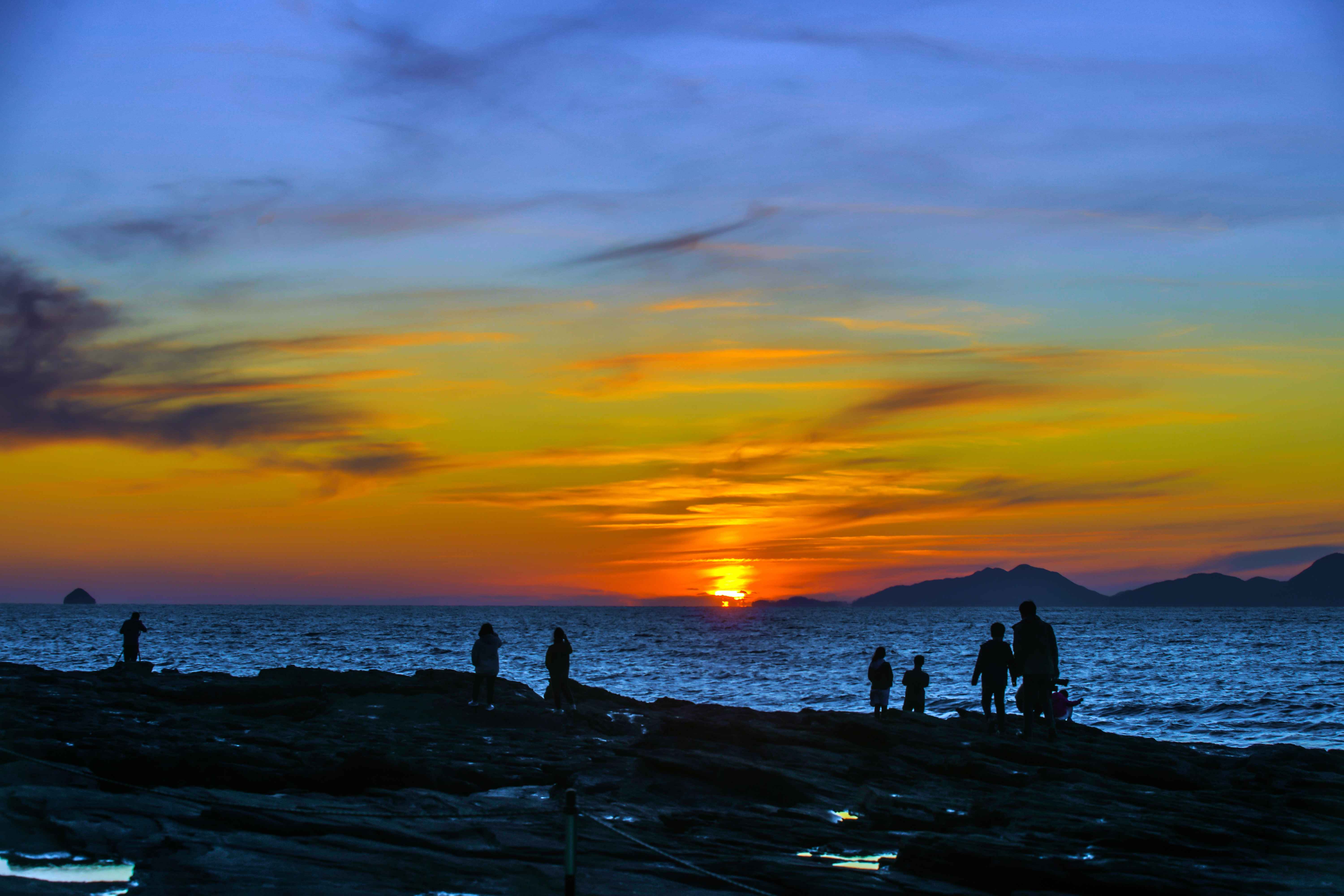 서해처럼 해가 직선으로 떨어지지는 않지만, 대신 색의 변화가 길다. 해가 보이지 않게 된 뒤에도 하늘에는 여러 단계의 색이 남고, 바다는 그 색을 받아 천천히 어두워진다. 이 과정이 비교적 오래 이어지는 것이 이곳의 특징이다.