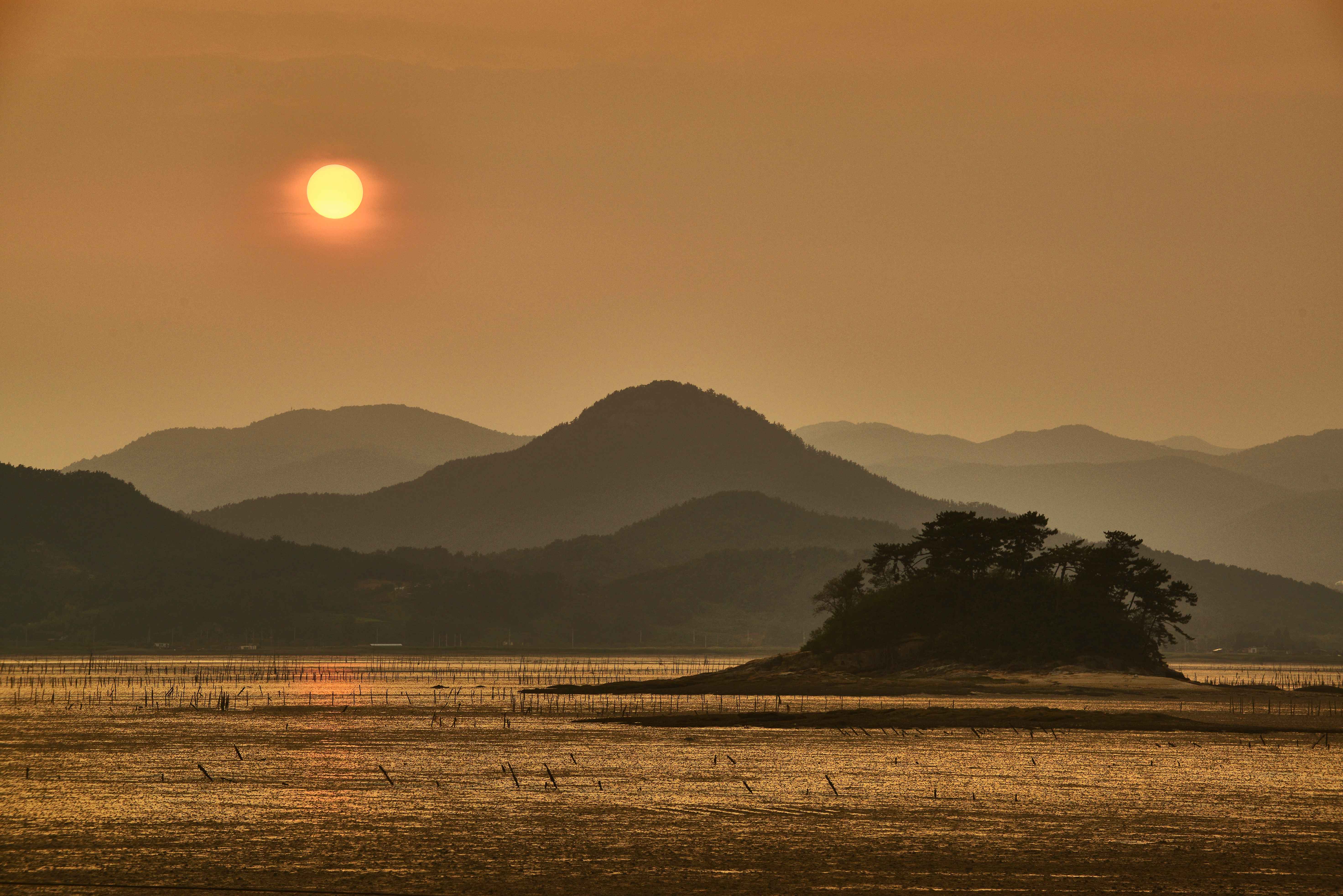 갯벌 위로 퍼지는 남해의 느린 일몰