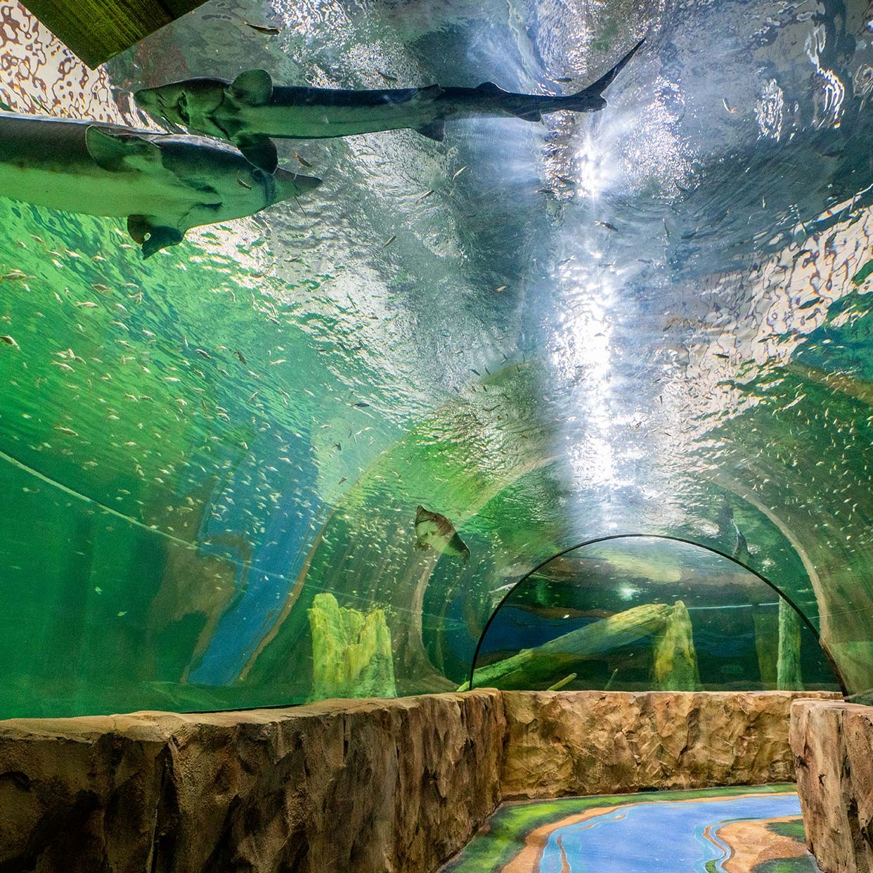 원터널 수조를 지나면 상어관과 메인 수조가 이어지고, 지구본 형태의 수조와 멸종위기종을 주제로 한 테마관이 동선을 따라 배치된다. 공간마다 조명과 수조 높이가 달라 시선이 단조롭지 않다.