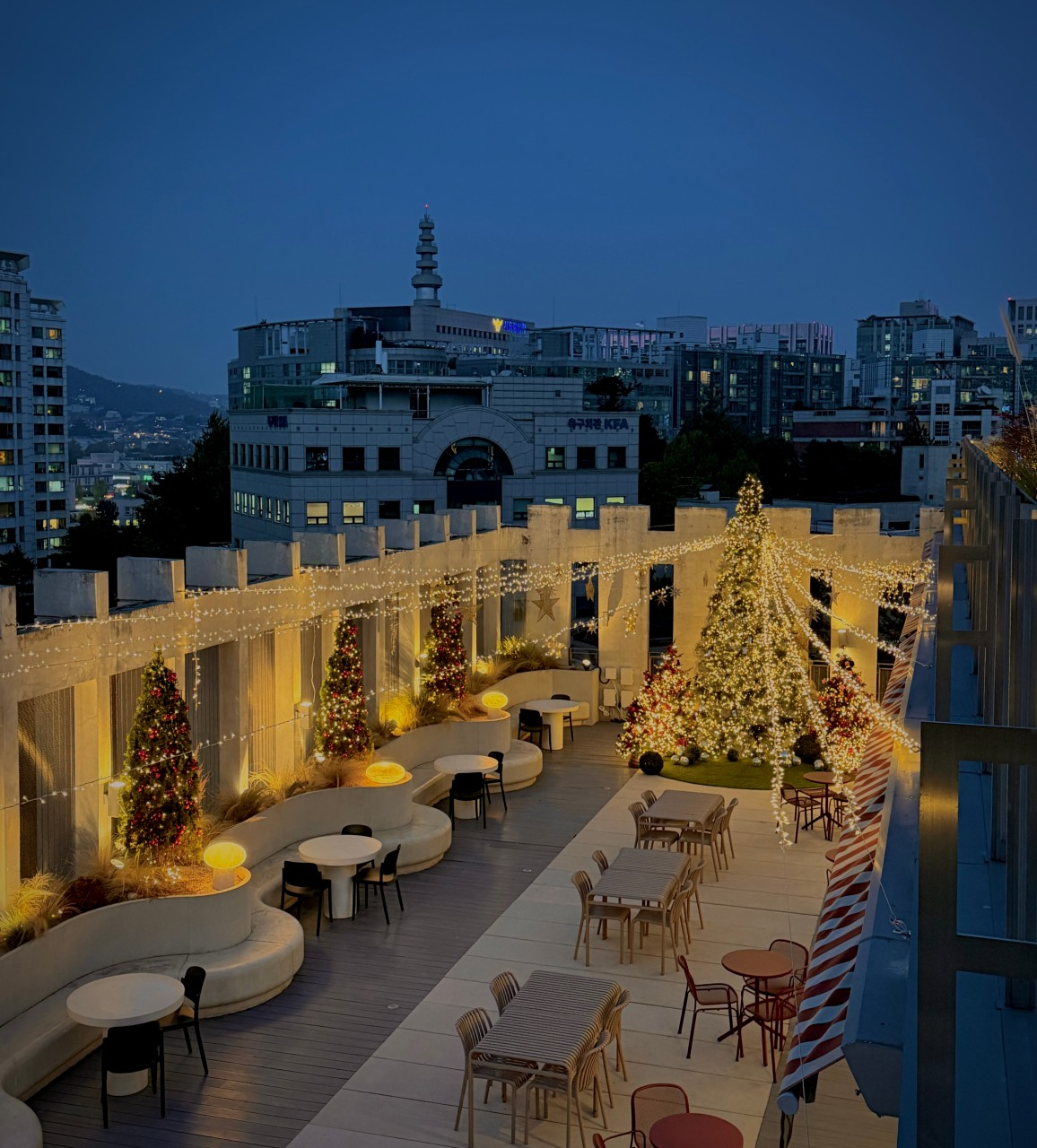 낮에는 베이커리와 커피 중심으로 운영되고, 저녁으로 갈수록 조명이 강조되면서 분위기가 달라진다. 루프탑은 계절에 따라 연출이 바뀌며, 특정 시즌에는 장식 요소가 더해지기도 한다. 공간이 넓어 주말에도 좌석 선택 폭이 있는 편이라는 점이 특징이다.