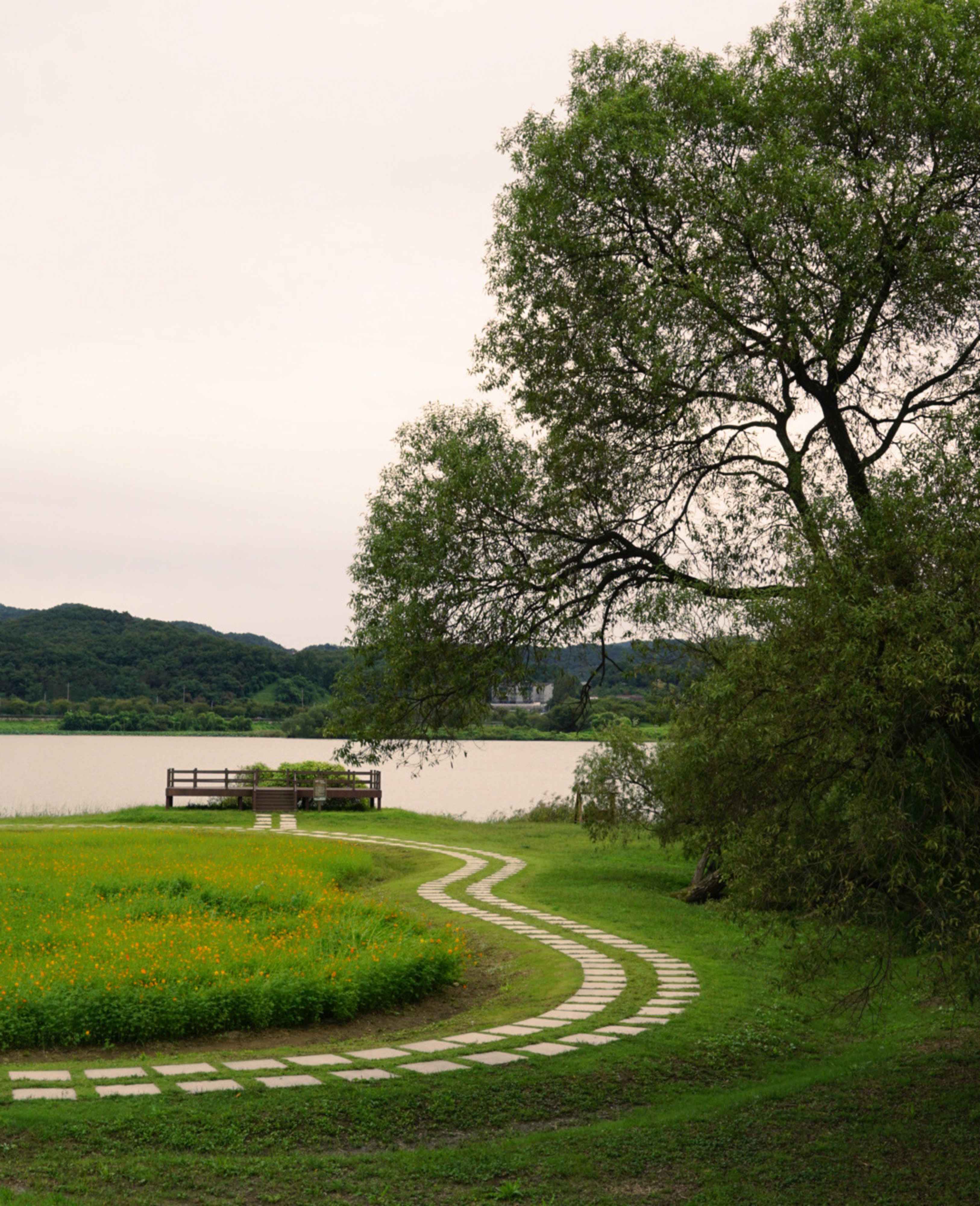 강변을 따라 이어지는 평지 산책 루트