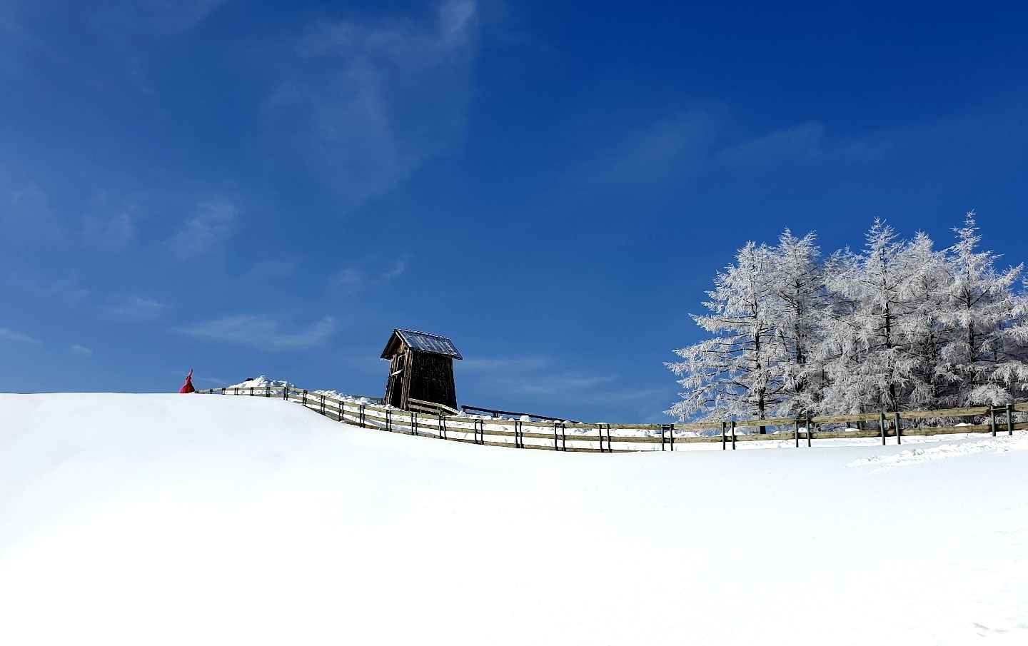 산책로를 따라 걸으면 바람이 지나간 자리와 그대로 쌓인 눈층이 다르게 보이고, 초지 사이로 난 곡선형 산책로가 눈 덮인 능선을 따라 이어진다. 움막 앞 구간은 특히 눈이 잘 쌓여 ‘고지대 설원’의 느낌을 가장 뚜렷하게 준다.