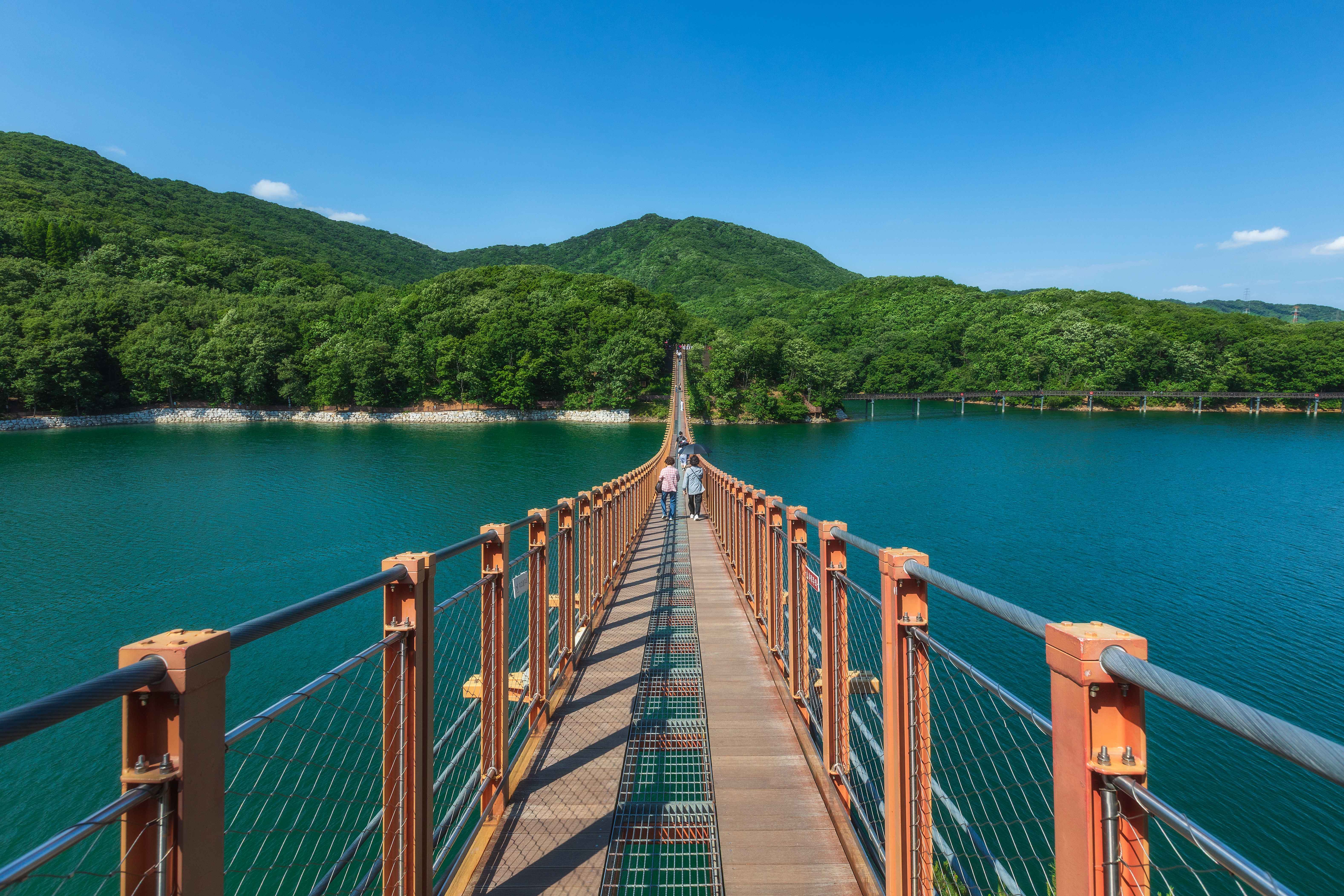 오전 DMZ 일대를 벗어나면 분위기가 크게 달라진다. 마장호수 출렁다리는 호수를 가로지르는 산책형 코스다.