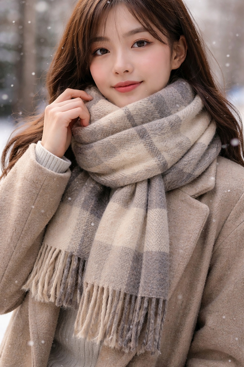 • 남성용 겨울 코트 → 체크 패턴이나 뉴트럴 톤 목도리