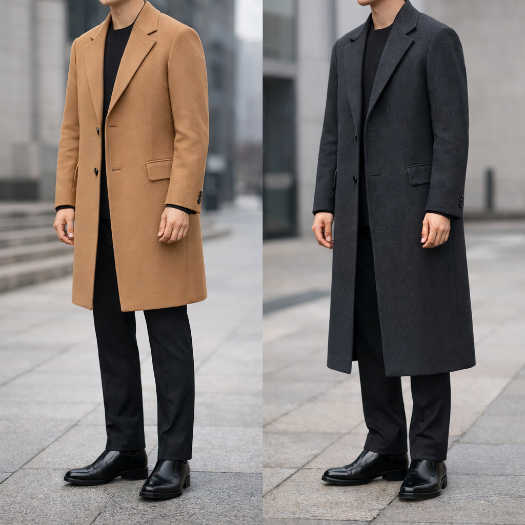 패턴은 작고 잔잔할수록 유리하다. 큰 체크, 굵은 스트라이프, 화려한 장식은 코트 자체의 존재감을 키워 체형이 묻히기 쉽다. 단색 울 코트나 아주 미세한 헤링본 정도가 비율을 흐리지 않으면서도 질감을 살려주는 선택이다.