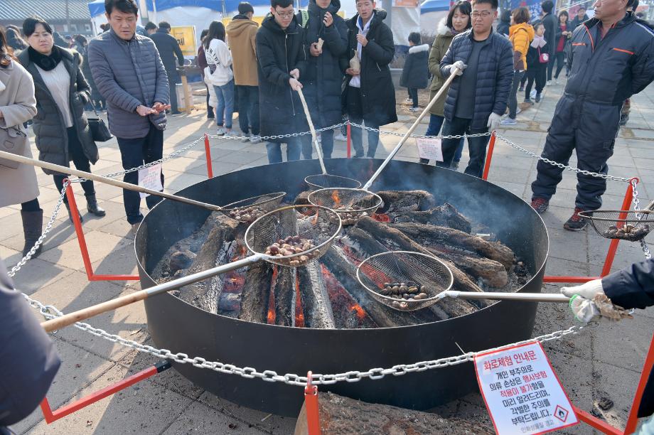 축제의 중심은 단연 대형화로 군밤 체험이다. 지름 약 2m에 달하는 대형 화로에서 긴 뜰망을 이용해 알밤을 직접 구워 먹을 수 있으며, 불 앞에서 밤이 익어가는 과정을 체험하는 것이 이 축제만의 매력이다.