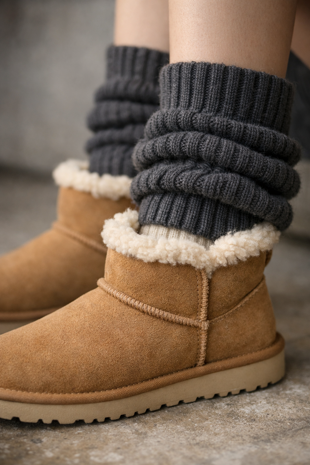 마지막 디테일은 발끝이다. 부츠나 스니커즈 사이로 살짝 보이는 니트 양말은 시각적인 포인트이자 보온 장치다. 레그워머는 다리 라인을 길어 보이게 하면서 전체 밸런스를 정리하는 역할을 한다.