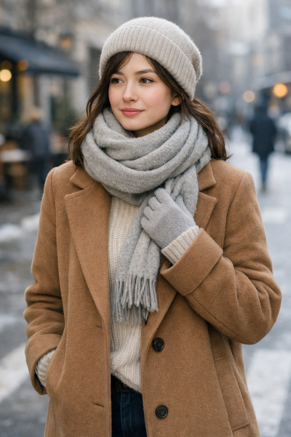 룩의 분위기를 가르는 것은 훨씬 작고 사소해 보이는 디테일, 바로 겨울 액세서리다. 비니 하나, 오버사이즈 스카프 하나, 손끝을 덮는 핸드워머 한 쌍이 전체 인상을 바꾼다. 같은 아우터를 입어도 액세서리에 따라 스타일은 전혀 다른 방향으로 흐른다.